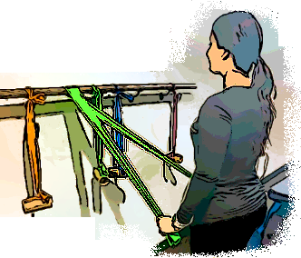 Instructions: Take both ends of the resistance tubing & with your arms held out at approximately a 45-degree angle, pull the tubing straight up & back as far as comfortable
